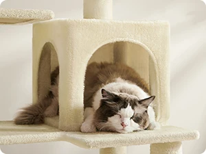 With a reinforced base plate and an extra tilt protection, this scratching post has additional stability. You can even invite two cat friends (each Max. 5 kg)